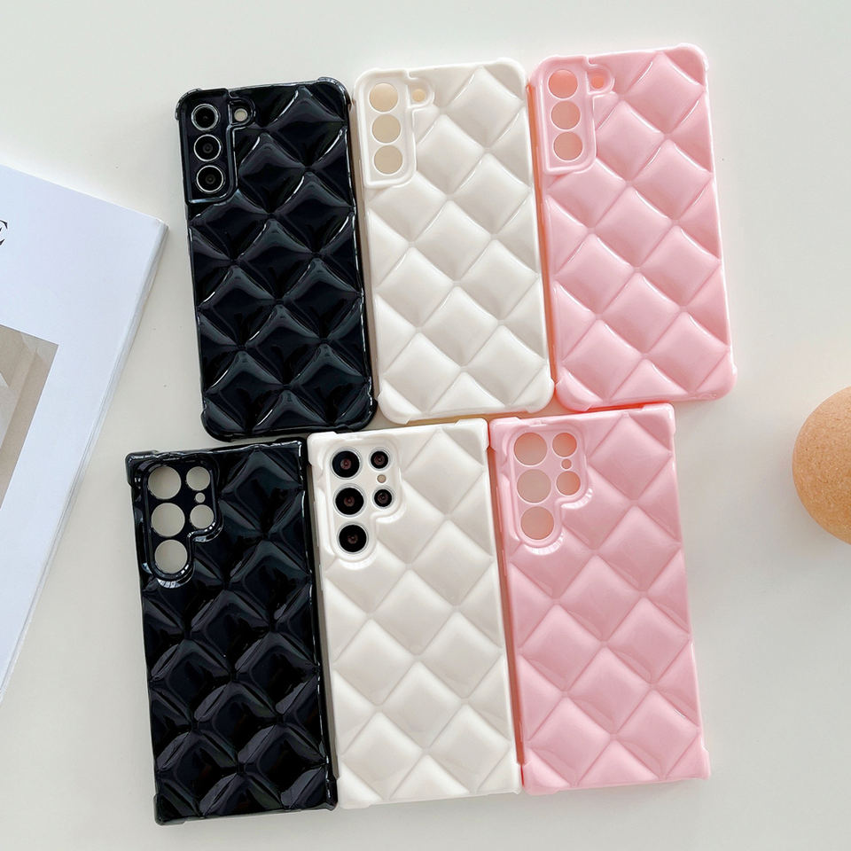 Ins Fresh Candy Color Grid Down Jackets Design 3D the Puffer Cover para Samsung Galaxy S22 Funda ultra a prueba de golpes para S21 Plus