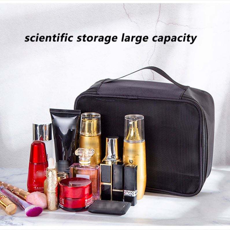Bolsa de maquillaje de Pvc transparente con logotipo personalizado superventas de Ins, bolsas de cosméticos de malla portátiles de viaje ecológicas para mujer