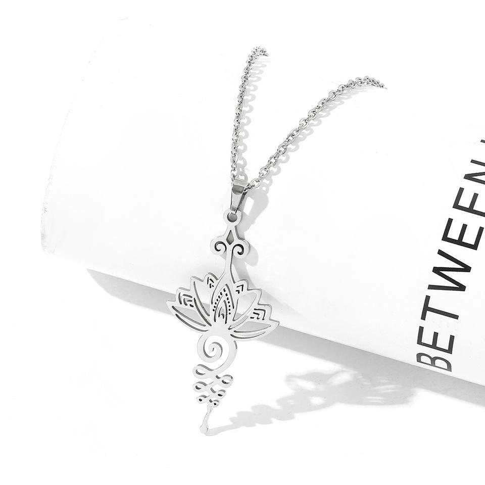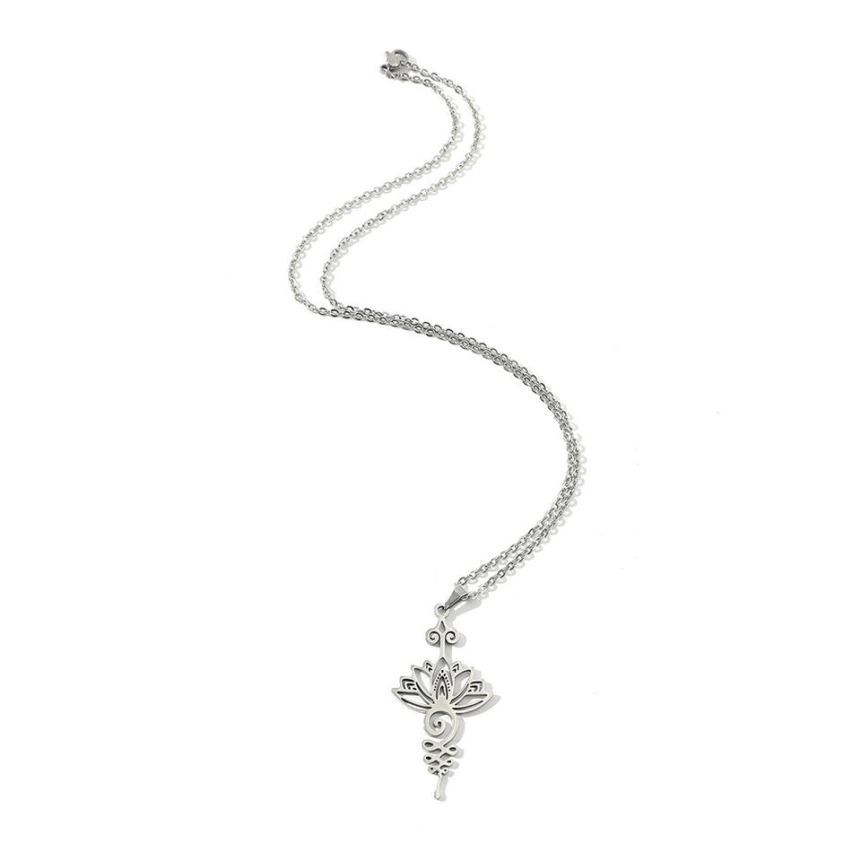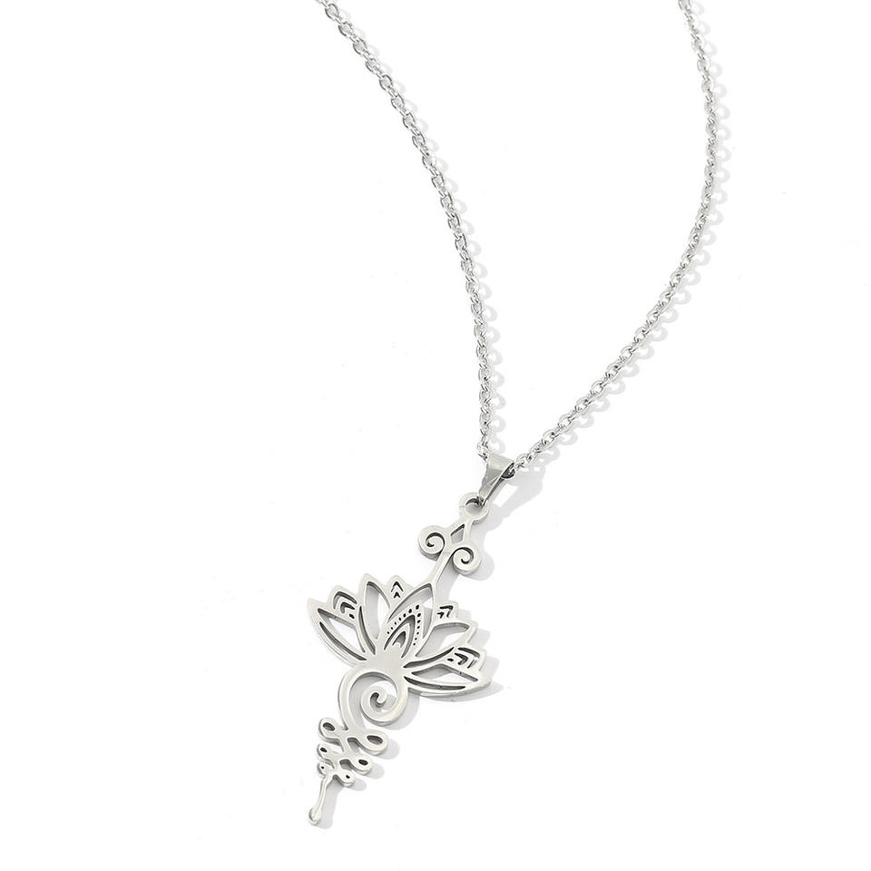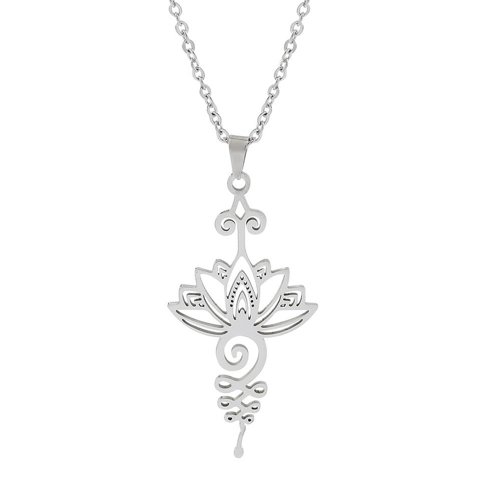 Collar con Colgante de Flor de Loto de Titanio Simple para Mujer y Hombre, Joyería de Acero Inoxidable