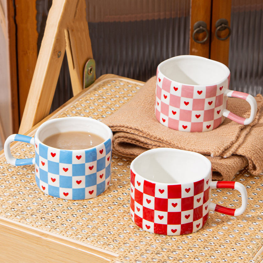 Ins Style Heart Ceramic Mug Cute Coffee Cup for Couple Gift