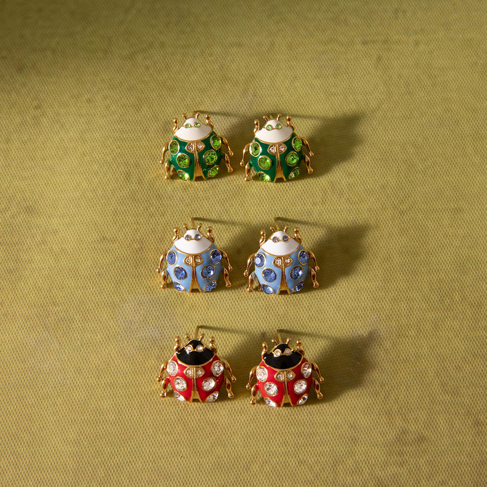 Pendientes colgantes con forma de mariquita y circonitas engastadas en acero inoxidable para joyería de moda