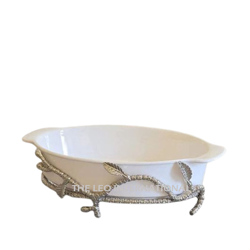 Interior brillante pulido barco forma diseño aluminio Metal decorativo servir comida fruta vegetal elegante cuenco