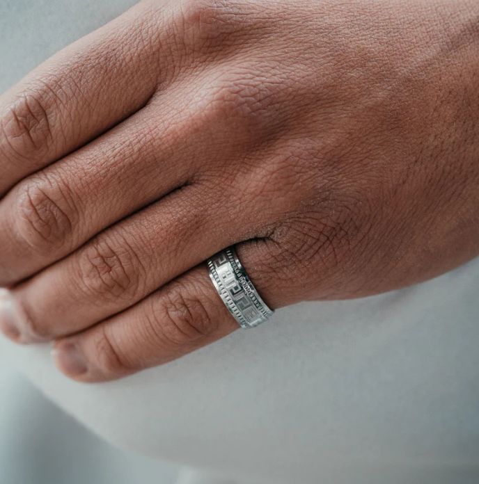 Nombre del producto:Patrón de gran muralla en relieve no empañar anillo de banda griega de los hombres