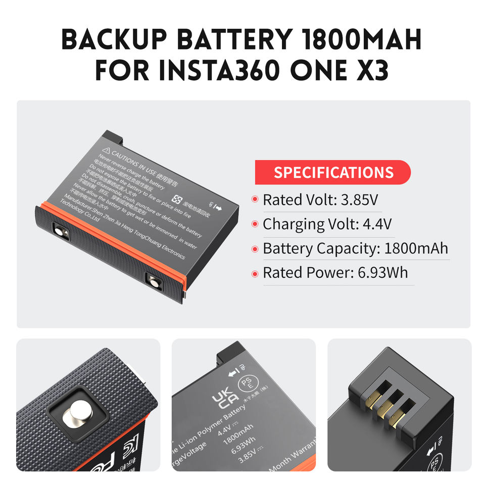 Batería de Repuesto para Cámara Insta360 X3 ONE X3, 1800mAh, Recargable, de Polímero de Litio, Naranja, en Existencia, Accesorios