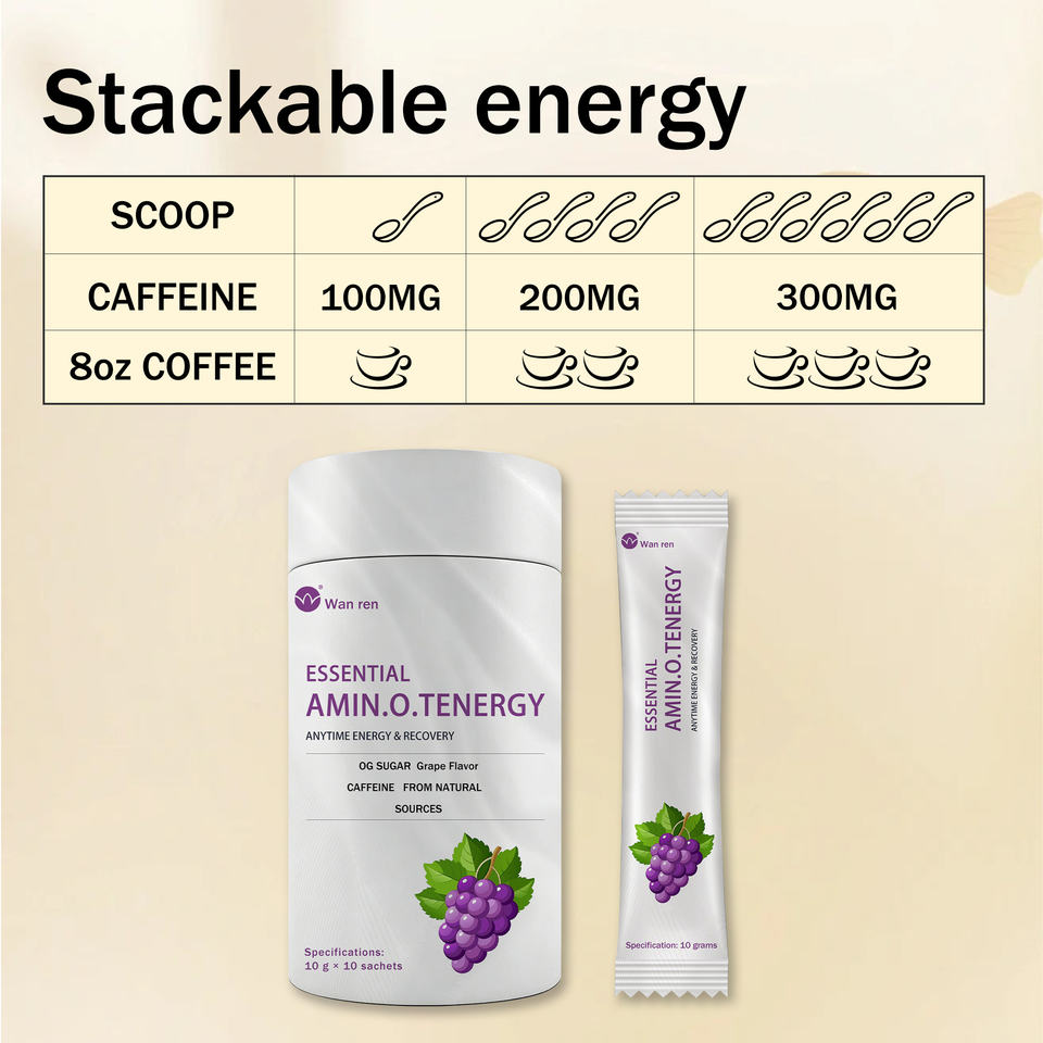 Polvo de Aminoácidos de Uva de Disolución Instantánea, Apoyo Diario para la Recuperación y el Bienestar, 10 g por Porción, Fórmula Vegana Sin OMG, OEM Privado