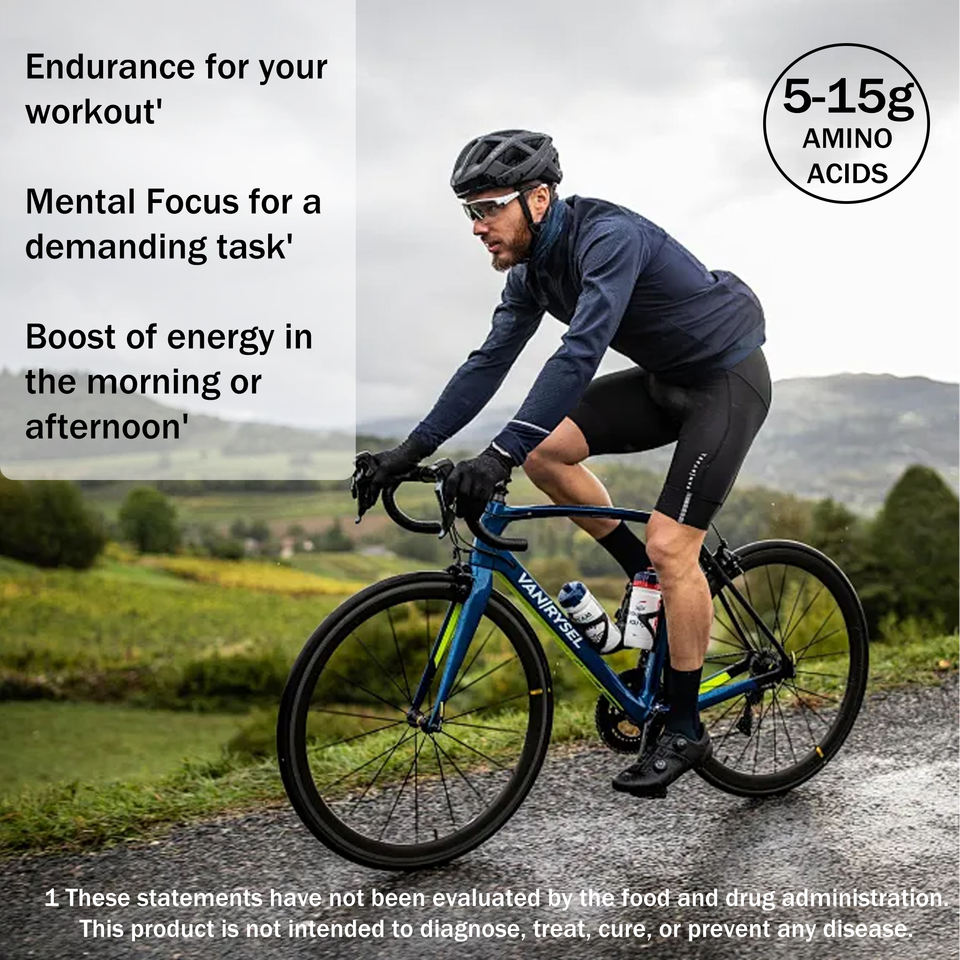 L-Leucina, L-Isoleucina, L-Valina (Relación BCAA 2:1:1), L-Glutamina, L-Lisina, L-Metionina