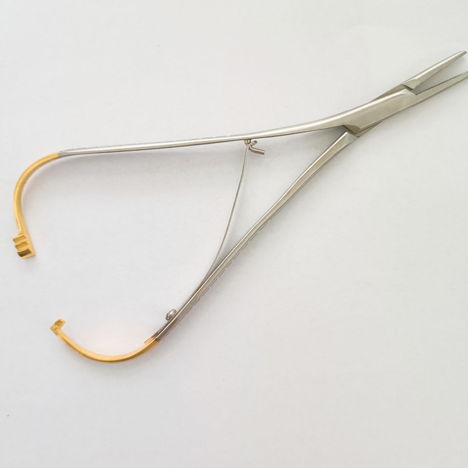 Aguja Mathieu para Instrumentos, Punta Estrecha de Carburo de Tungsteno, Punta Dentada Dorada, Pinzas para Sujetar Agujas Dentales