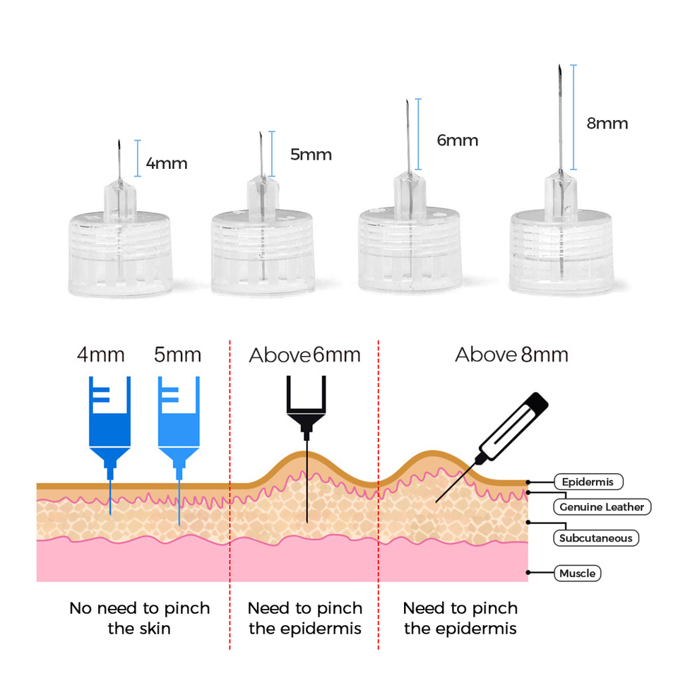 Diseño de aguja:El diámetro ancho del escudo reduce la presión y la resistencia sobre la piel.