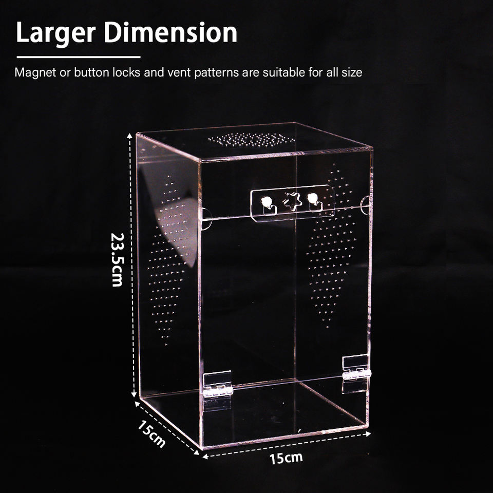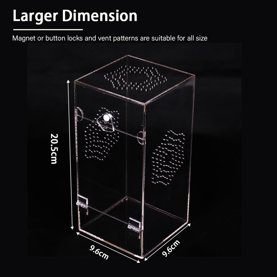 Terrario Cerrado Clásico de Acrílico Integrado, Caja de Cría de Reptiles Simple, Recinto Impermeable para Invertebrados y Arañas Saltadoras