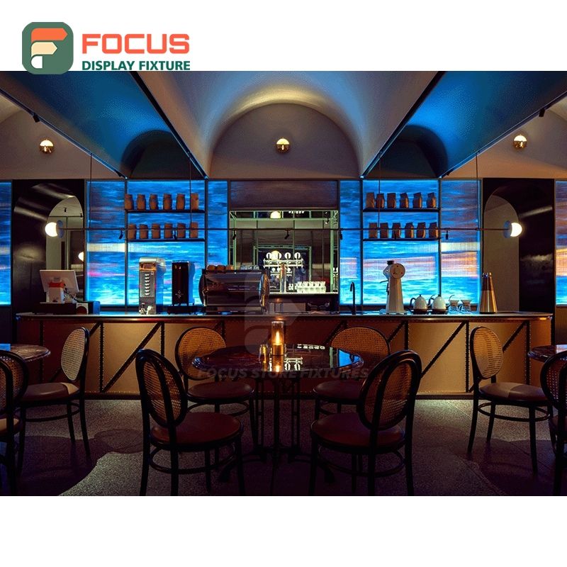 Mostrador de Servicio Integrado para Cafetería, Acabado en Madera Laminada, Zona de Recogida de Pedidos, Mostrador de Servicio para Tienda