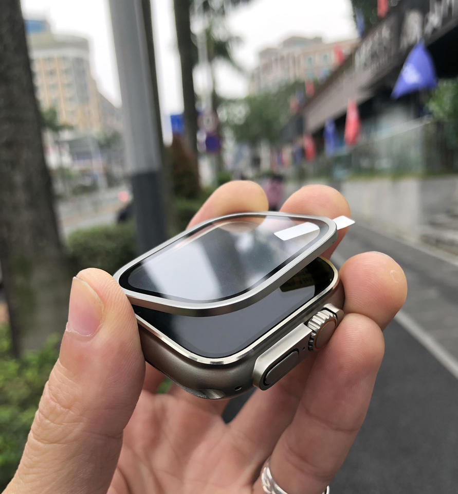 Estuche protector integrado con marco de metal Película templada de 49mm para Apple Watch 8 Ultra en bandas de reloj inteligente de color original