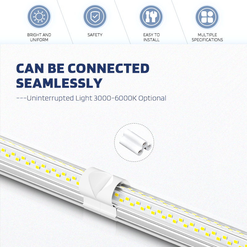Luz LED T8 Integrada en Forma de V de 4 y 8 Pies, 50W-100W, Cuerpo de Aluminio, Chip SMD2835 para Iluminación Interior de Paisajes, Supermercados y Talleres