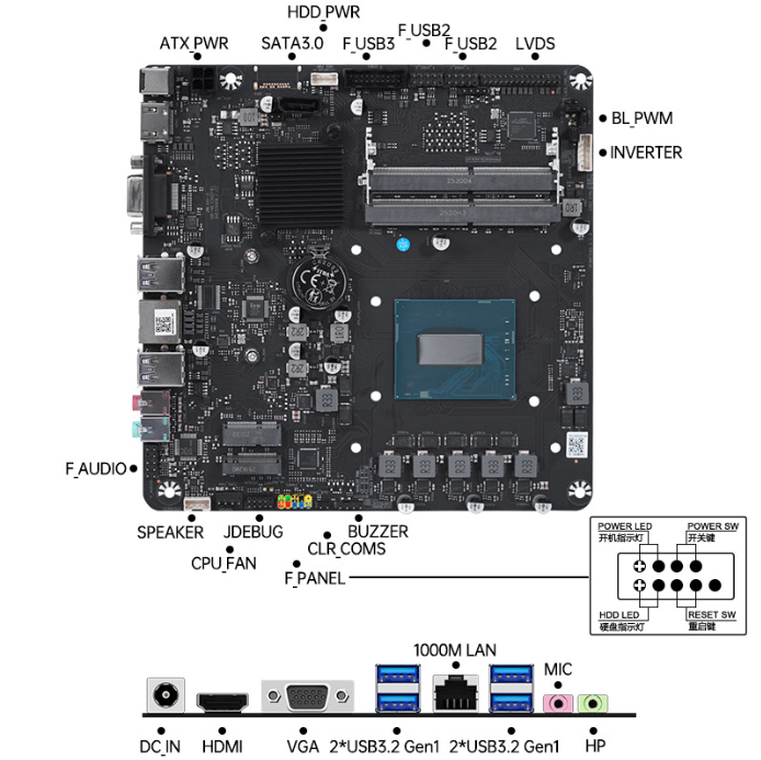 Wifi, SATA, VGA, M.2, HDMI
