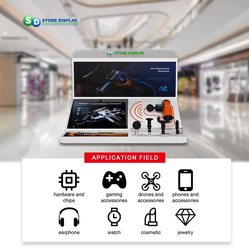 Soporte de exhibición de acrílico inteligente para mesa, tienda minorista de cosméticos, promoción de centro comercial, pantalla inteligente LCD de 10,1 pulgadas