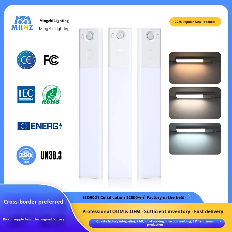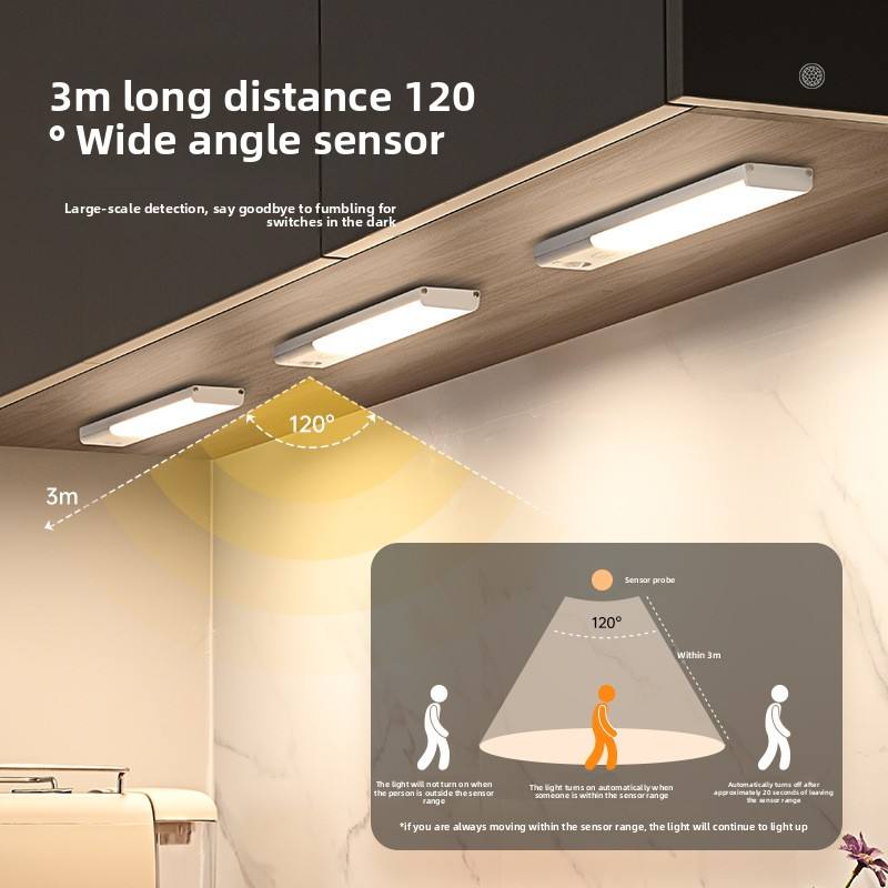 Tira de luz LED con Sensor de cuerpo humano automático inteligente, tira larga magnética recargable para armarios de luz, electrodomésticos de vino