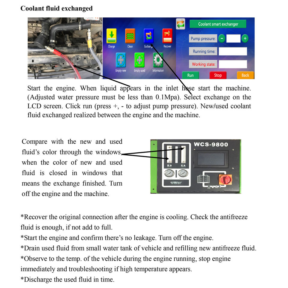 Limpieza de circulación, llenado, reciclaje de líquidos residuales, etc.