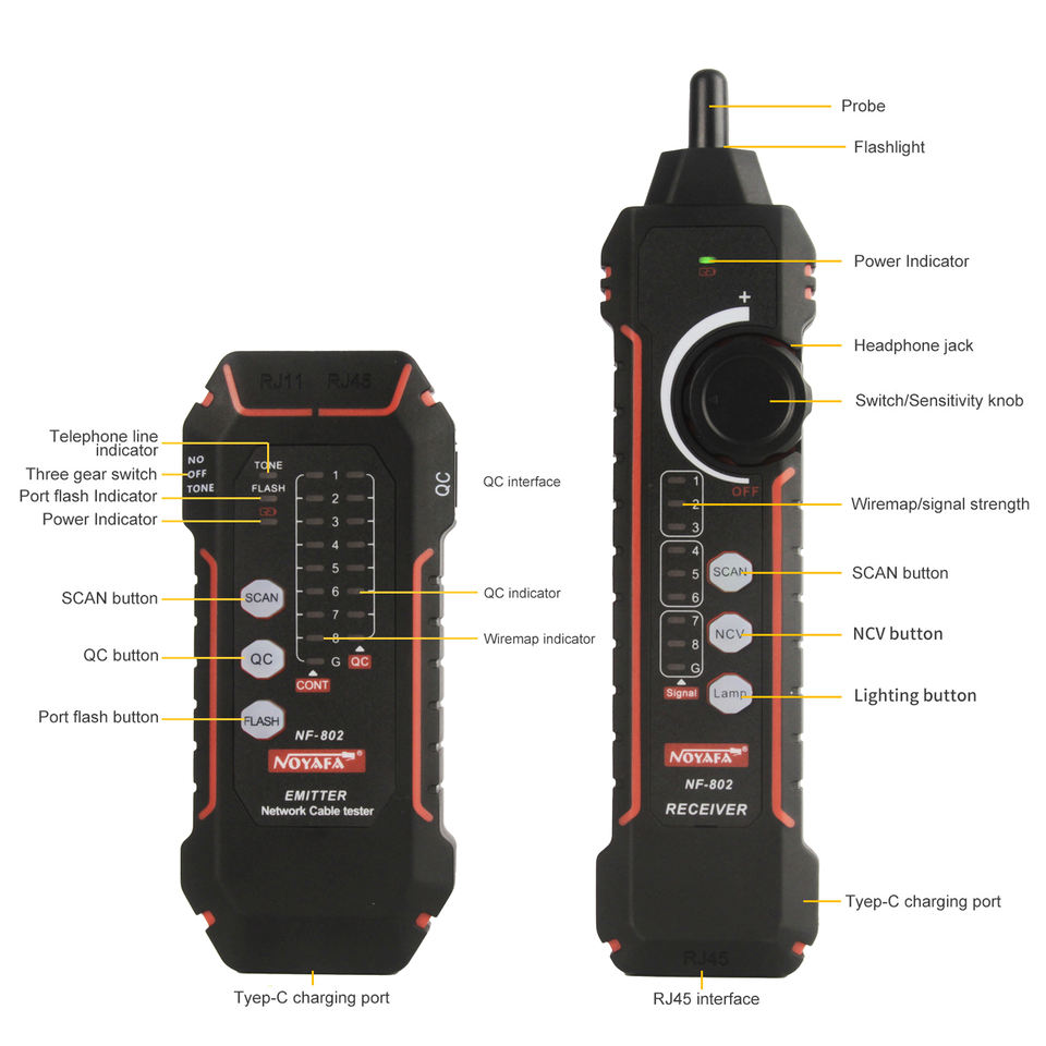 Buscador de cables inteligente Comprobador de línea de Comprobador de cables Prueba de interfaz RJ45 RJ11 con función de parpadeo de puerto