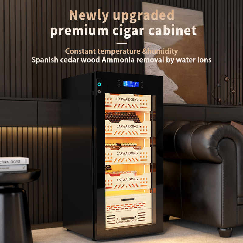 Humidor Inteligente para Cigarros de Madera de Cedro con Compresor de Humedad Constante, Acero Inoxidable, Capacidad de 98L, Control Remoto WIFI, para el Hogar