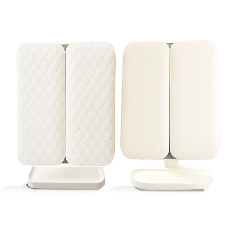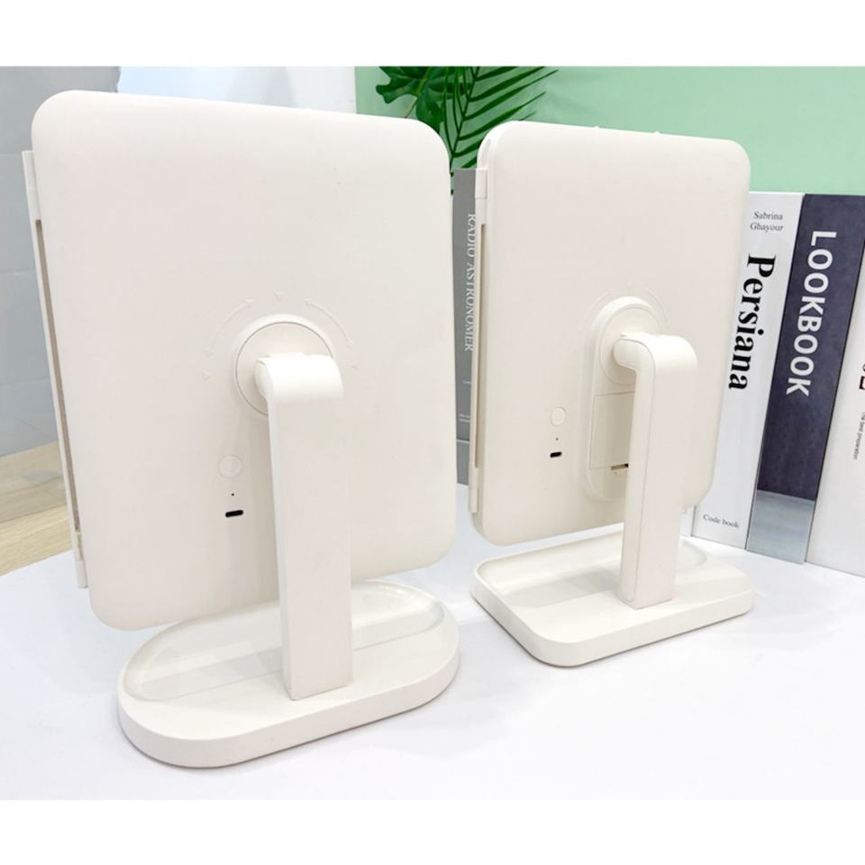Nombre del producto:Espejo de Maquillaje Blanco con Doble Puerta y Base Cuadrada (Funciona con Pilas Secas)