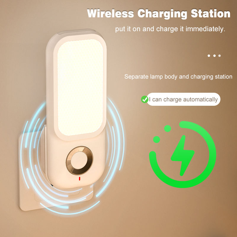Luces Nocturnas Inteligentes con Sensor de Movimiento LED, Encendido/Apagado Automático por USB, Lámpara de Inducción del Cuerpo Humano con Estación de Carga Inalámbrica
