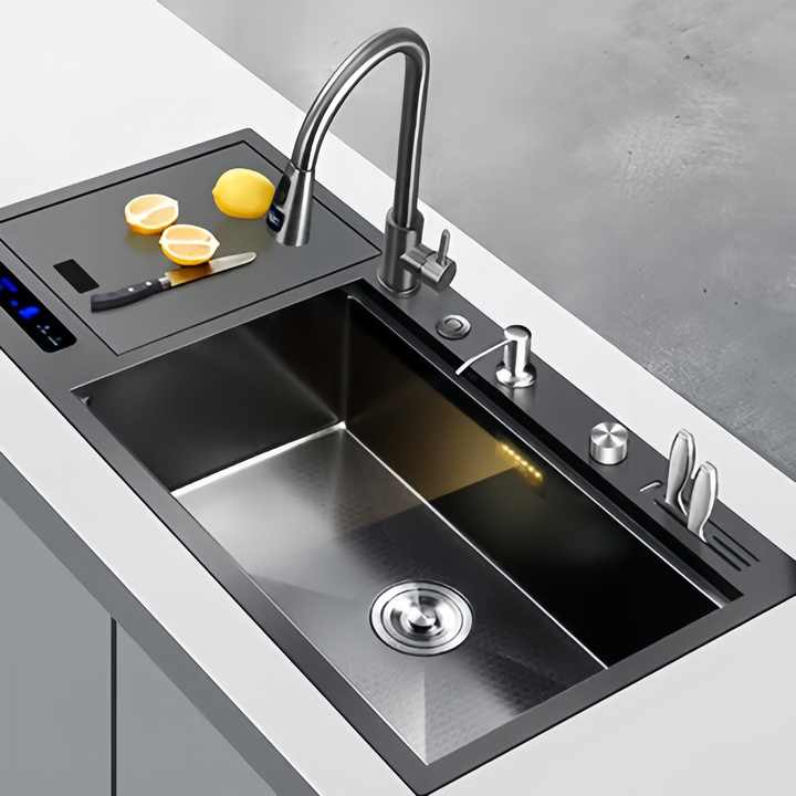 Fregadero Ultrasónico de Purificación Inteligente con Instalación Incluida, Lavavajillas Integrado para Cocina con Limpieza Automática