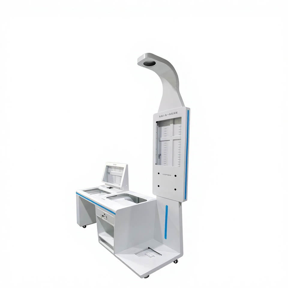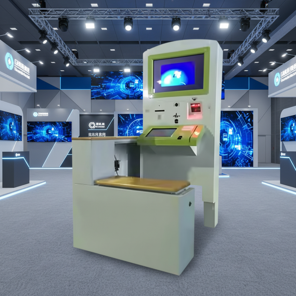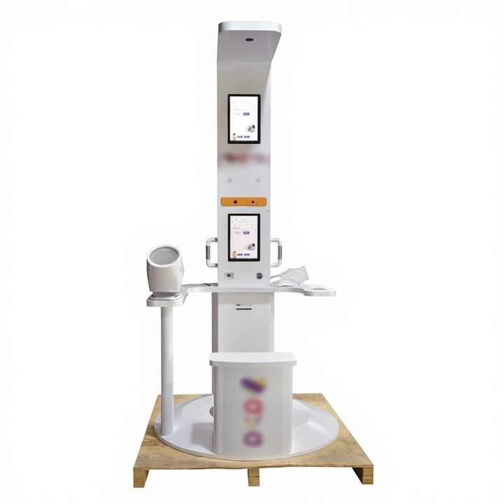 Quiosco Inteligente de Autoservicio para Chequeos de Salud con Pantalla Táctil, Lector de Códigos de Barras y Pago, para Uso en Interiores