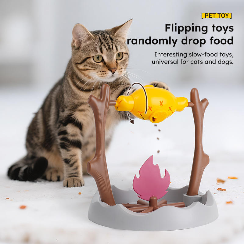 Alimentador lento inteligente de Material TPR para gatos, dispensador automático de golosinas para mascotas, rompecabezas giratorio para barbacoa, juguete de estilo de dibujos animados