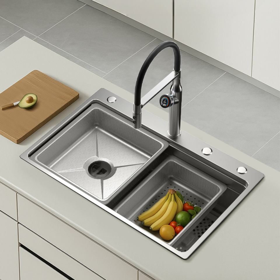 Fregadero de Cocina Inteligente de Acero Inoxidable 304 con Diseño Nano en Relieve, Gran Tamaño, con Pantalla Digital