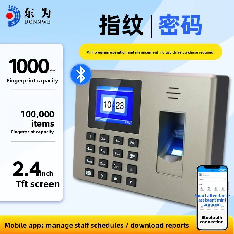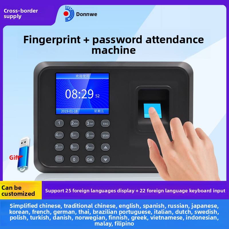 Reloj de tiempo inteligente Máquina DE ASISTENCIA Pantalla a color TFT de 2,4 pulgadas Almacenamiento USB 25 idiomas Huella digital