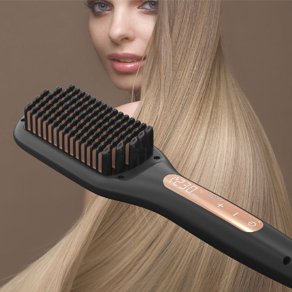 Pantalla táctil inteligente, pantalla de tubo Digital, alisador eléctrico largo y corto, cepillo para alisar el cabello