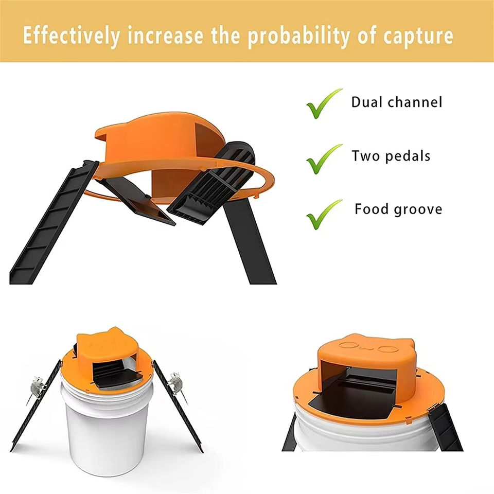 Trampa Inteligente para Ratones, Reinicio Automático, Trampa con Tapa de Cubeta, Trampa para Ratones de Jardín, Interior, Exterior y Garaje