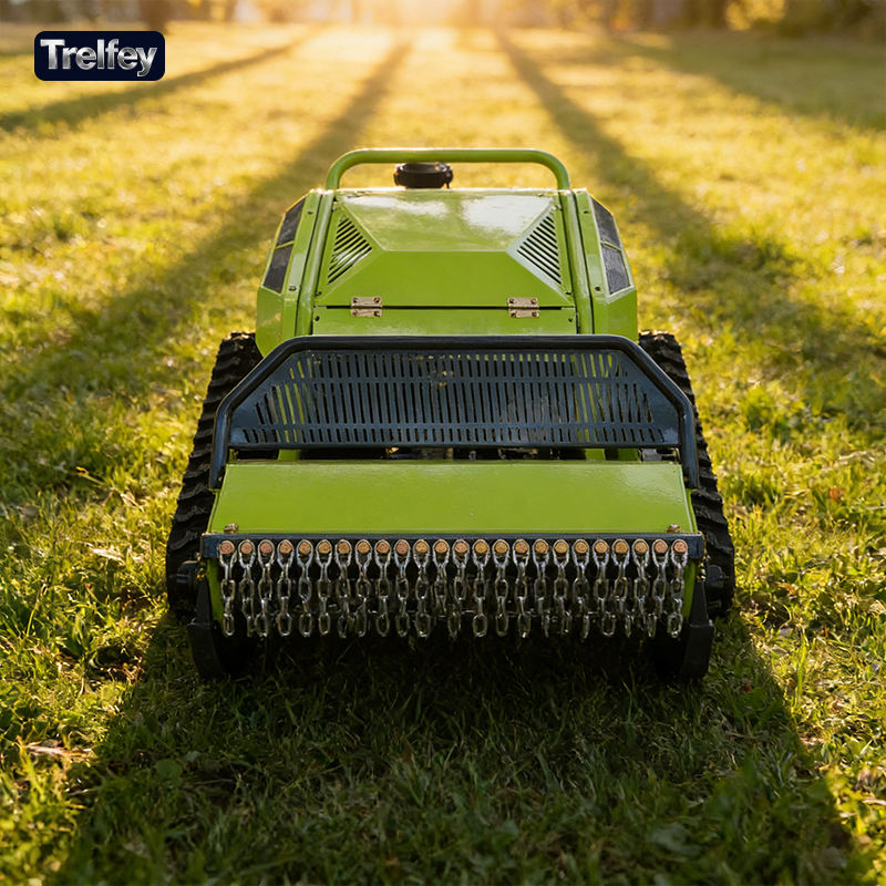 Cortadora de césped inteligente inalámbrica con control remoto, tanque de combustible de 5.5L y protección contra sobrecarga para la gestión de suelos en huertos