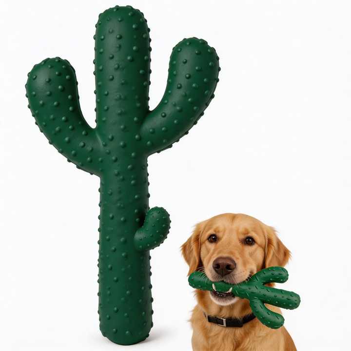 Juguete Interactivo para Perros, Resistente a Mordidas, de Goma, con Forma de Cactus, para Entrenamiento y Limpieza Dental