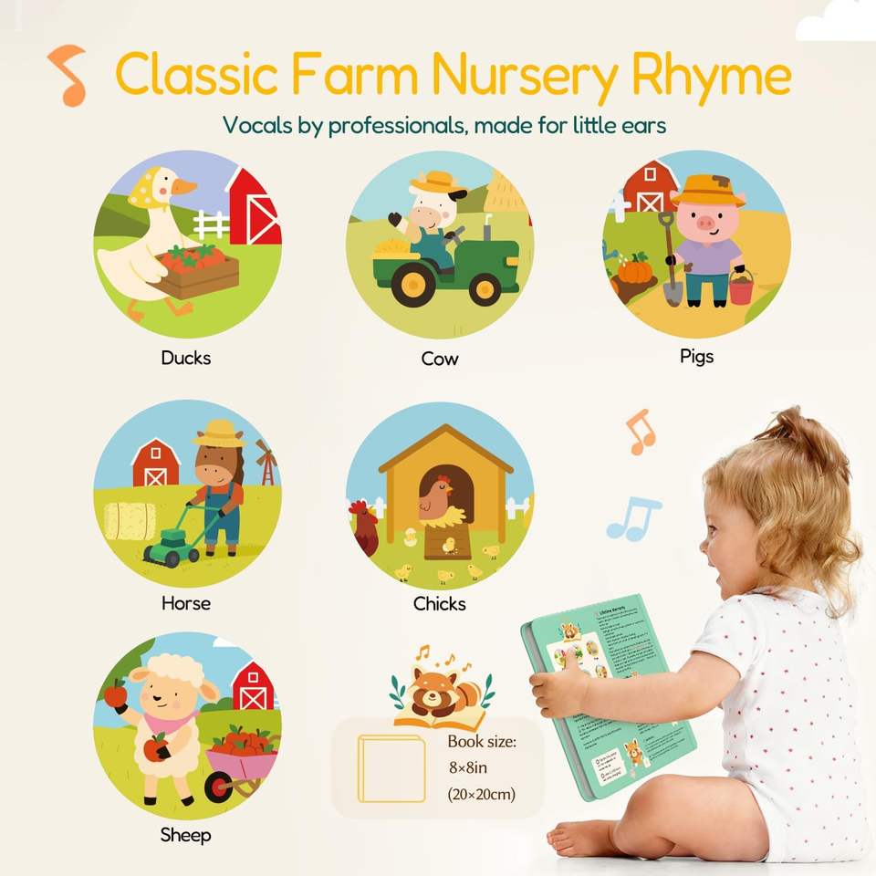 Libro Interactivo con Sonidos para Niños, Aprendizaje de las Primeras Palabras en Inglés con Páginas de Cartón - Libro Educativo Interactivo