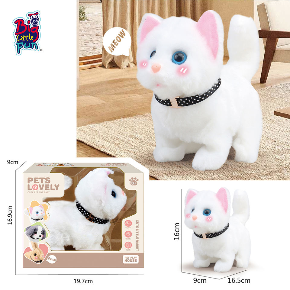 Juguete interactivo de gatito de peluche súper suave con ladridos que caminan y sonidos de gato realistas para el enriquecimiento de mascotas
