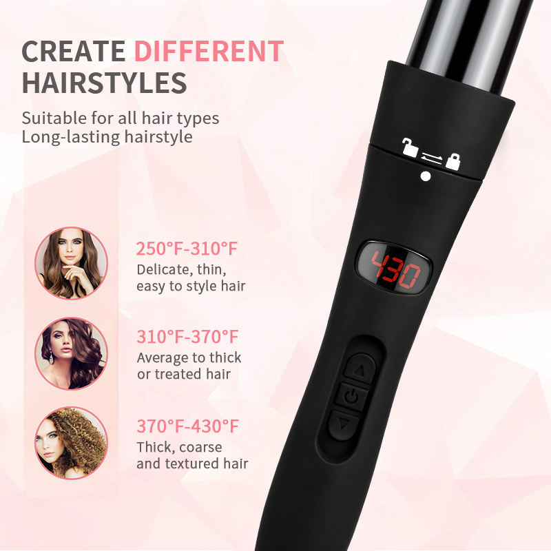 Juego de pinzas de varita rizadora de pelo giratorias intercambiables, juego de plancha rizada eléctrica de cerámica eléctrica, rizador de pelo, varita rizadora caliente