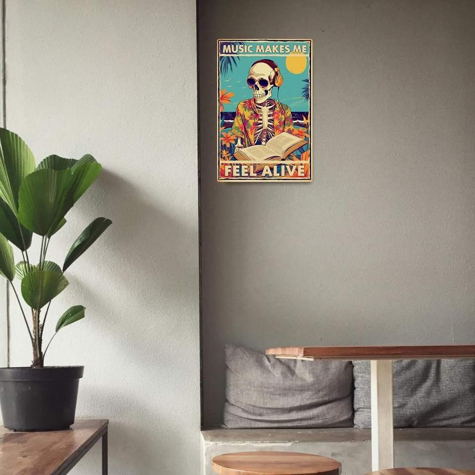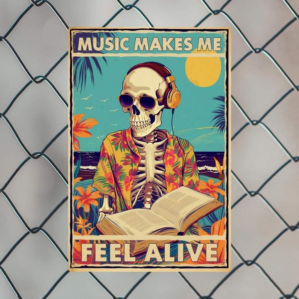 Letrero de aluminio metálico interesante, decoración gótica, emblema vintage, regalo para amantes de la música, 8 x 12 pulgadas