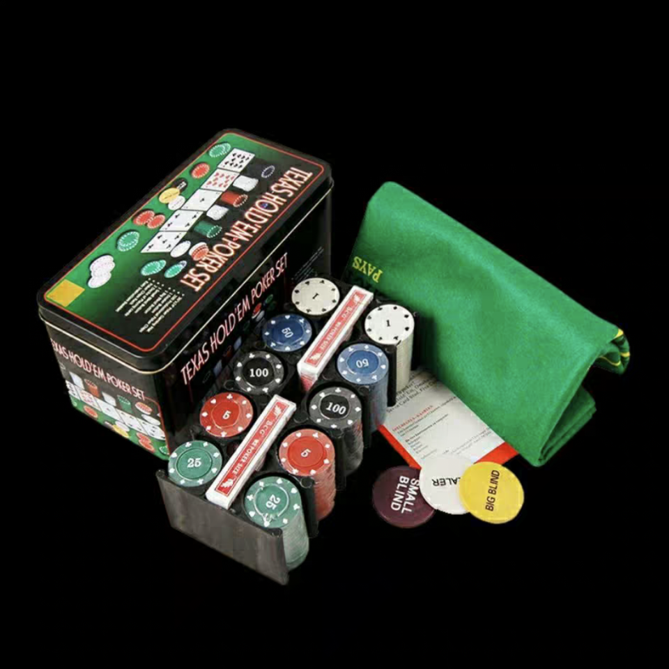 Juego de fichas de póker, caja de almacenamiento de hierro para juegos de cartas, 200 Chips, póker, distribuidor