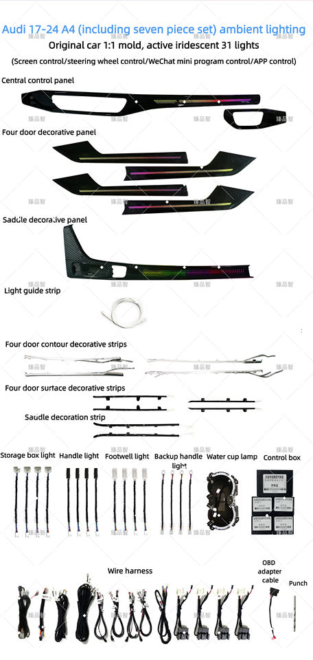 Luz ambiental Interior para coche, Sinfonía colorida, adecuada para Audi A4 2017-2024 B9, accesorios para coche 2018 2019 2020 2021 2022 2023