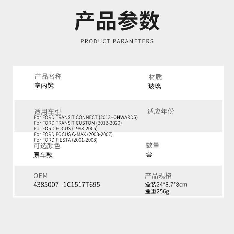 Espejo retrovisor interior para Ford Transit Focus Fiesta 4385007, pieza de repuesto de cristal