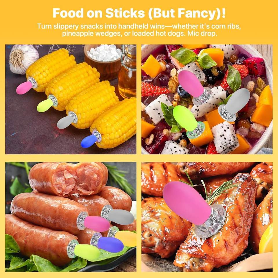 Juego de Soportes para Mazorcas de Maíz con Diseño Encajable, Asas de Silicona, Pernos de Acero Inoxidable, Estuche de Almacenamiento Incluido | Protección Auditiva