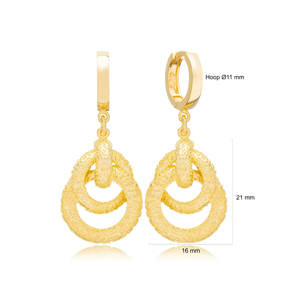 Pendientes colgantes texturizados con encanto redondo entrelazado, joyería de plata de ley 925 turca