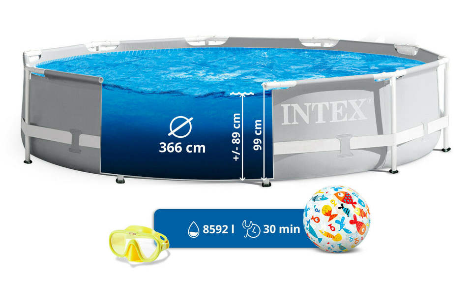 Piscina Redonda con Marco Prismático Intex 26716 de 366x99 cm de Alto con Bomba de Filtro, Marco para Piscina y Escalera, Piscina Elevada Redonda