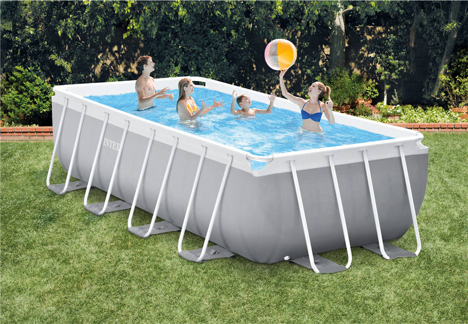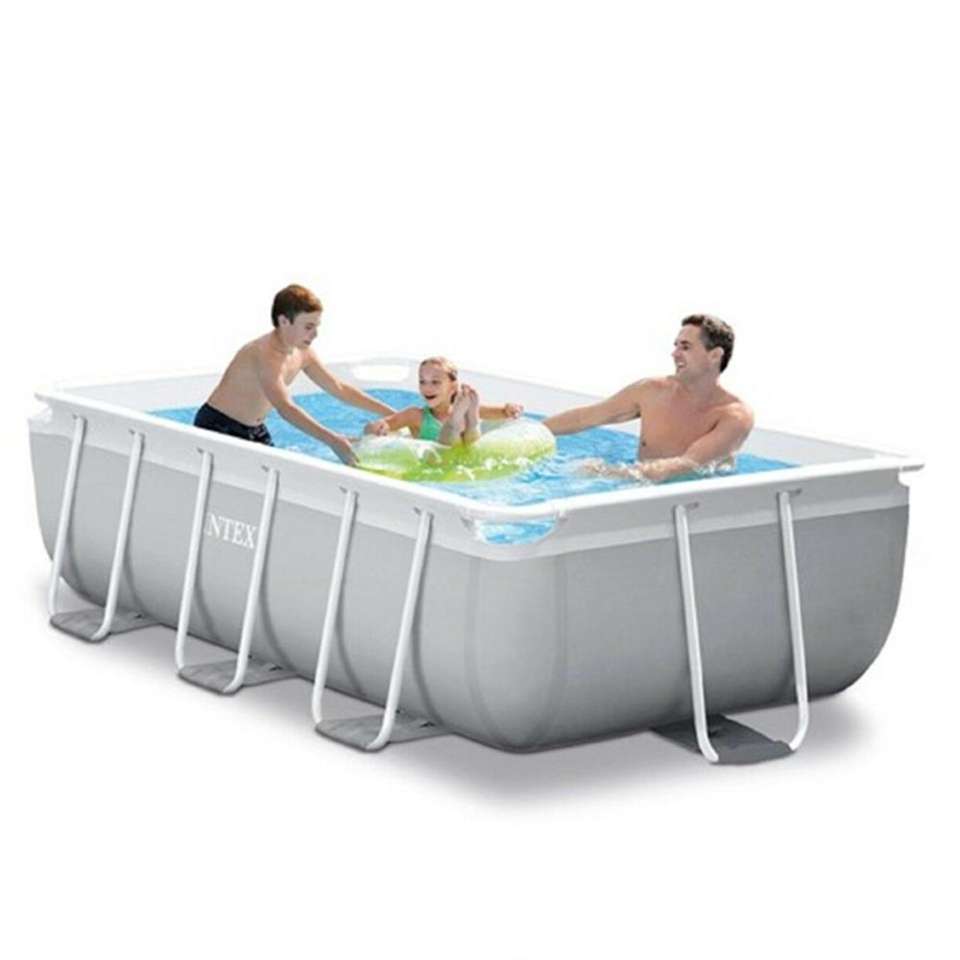 Juego de piscina Rectangular sobre el suelo Intex 26792 con escalera de seguridad, cubierta de marco de PVC, bomba, herramientas esenciales para piscina, accesorios