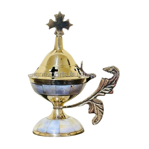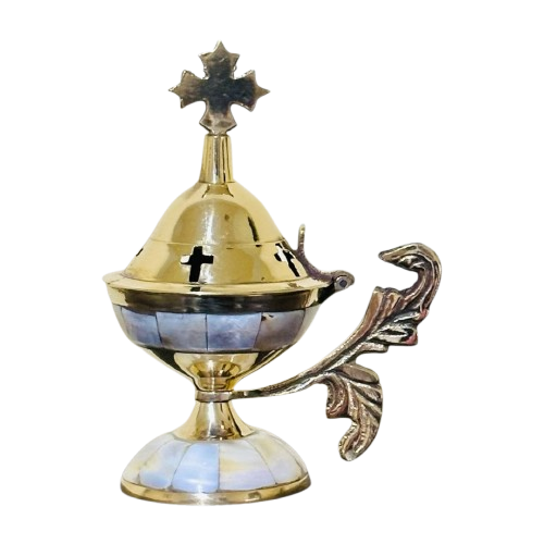 Inciensoario de latón macizo con intrincado trabajo de incrustaciones