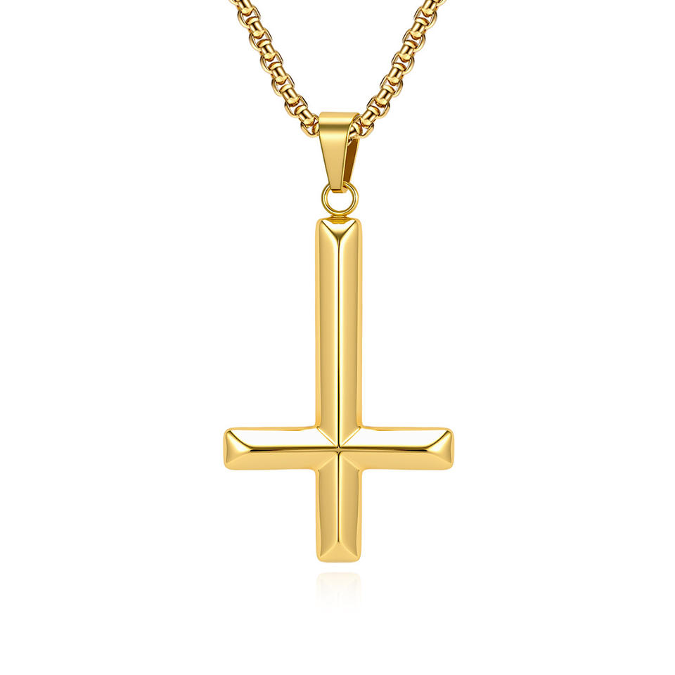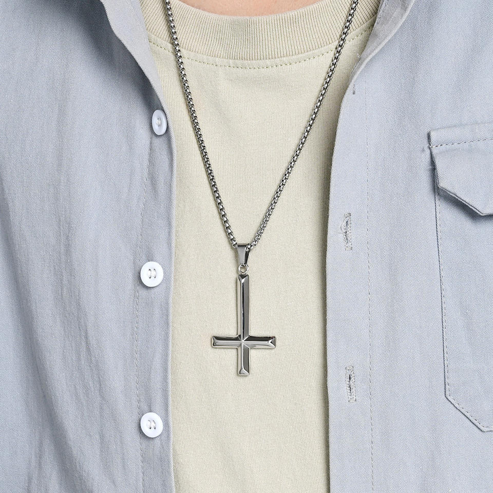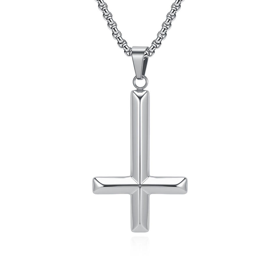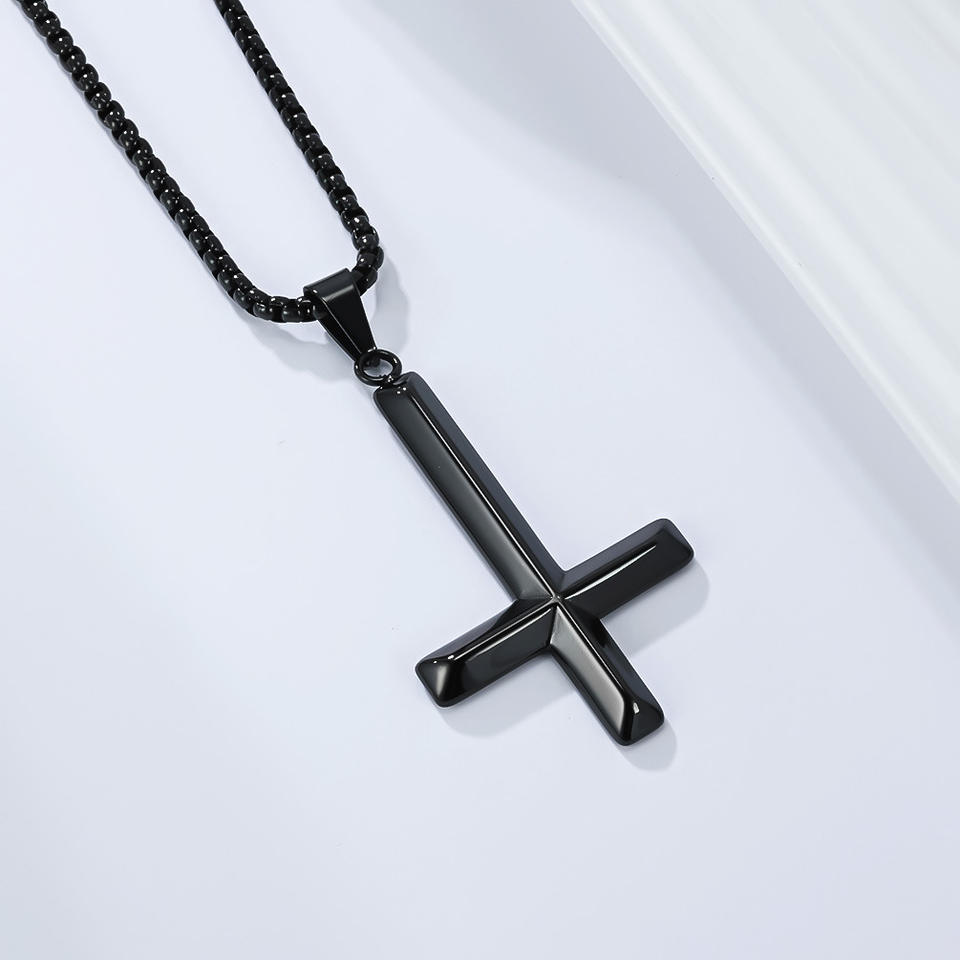 Collar con cruz invertida para hombre, colgante de acero de titanio, joyería de moda, accesorio masculino