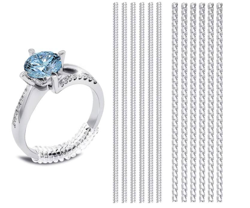 Ajustador de tamaño de anillo invisible, 4 tamaños para diferentes anchos de banda, protectores de anillo de silicona en espiral para mujeres y hombres