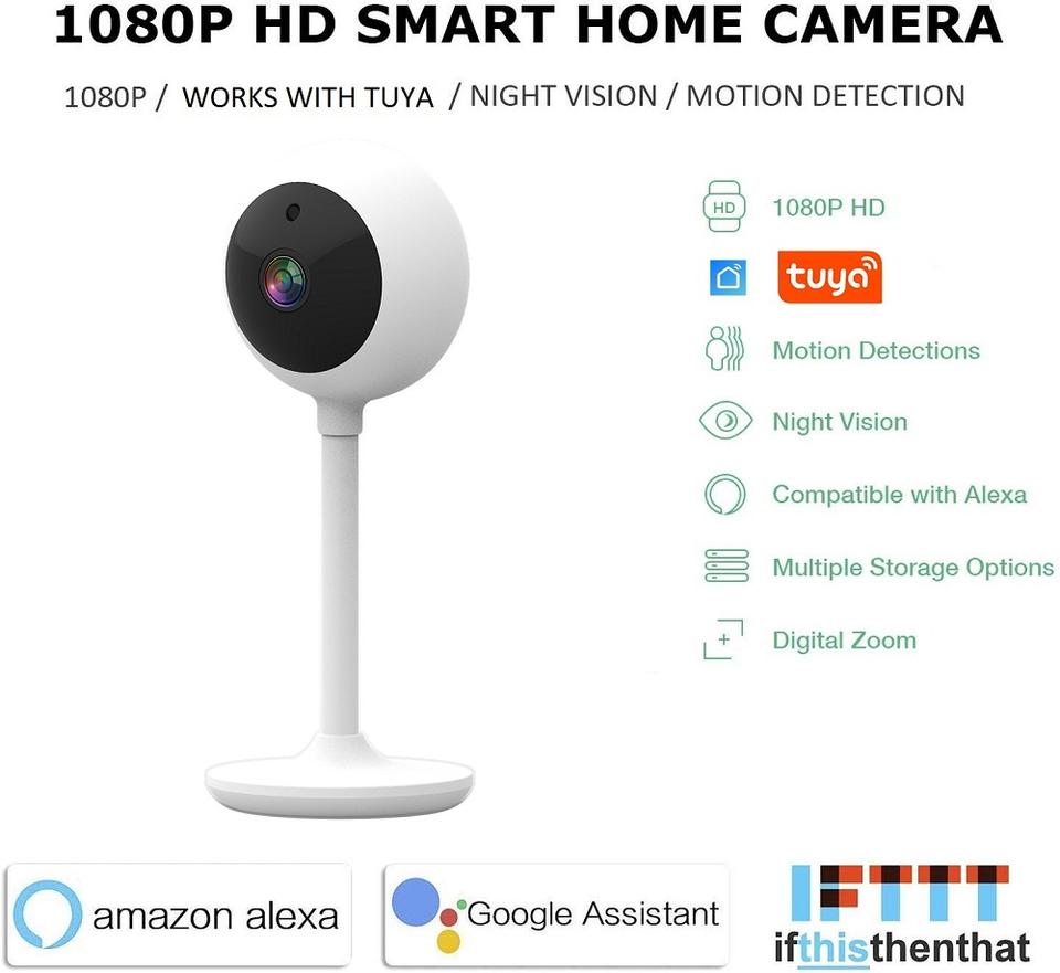 Cámara de Vigilancia WiFi Inalámbrica para Bebés, Compatible con Tuya Smart y Google Home, con Resolución de 1080p, Dispositivo de Automatización IoT