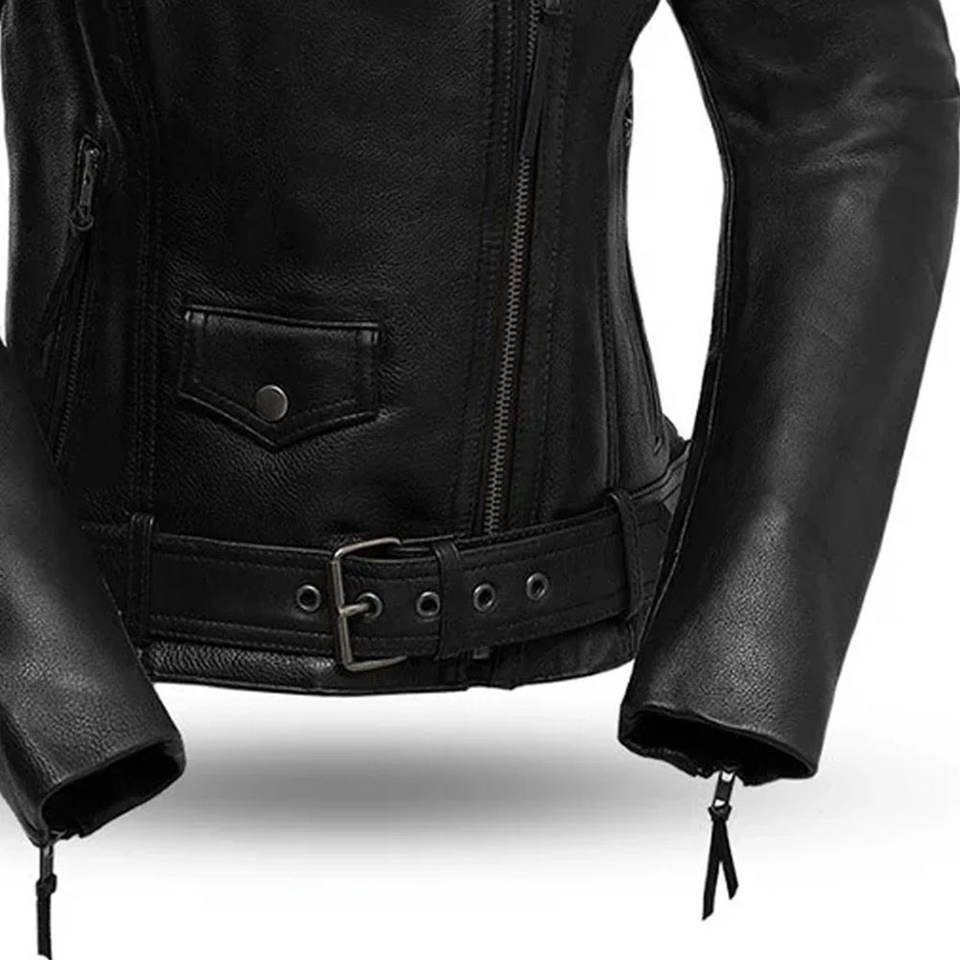 Palabras clave:Chaqueta de cuero para mujer, estilo motociclista de carreras.