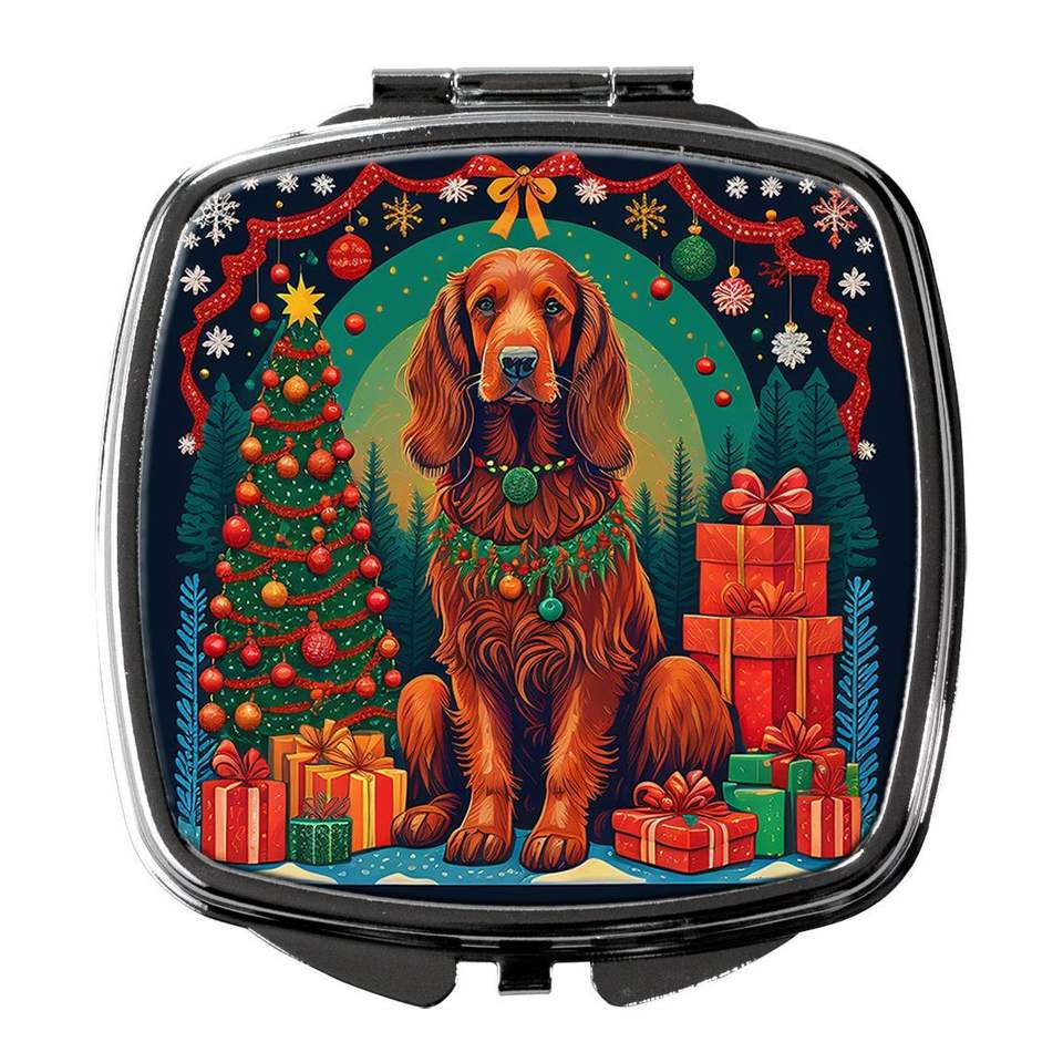 Espejo de maquillaje de viaje compacto de Navidad de Setter irlandés plegable de mano para mujeres y niñas Ideas de regalo de bolsillo decorativas